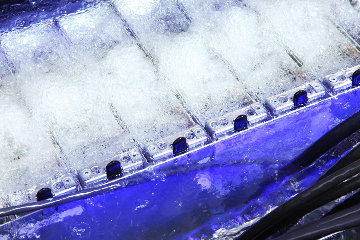 Los científicos de 3M utilizan técnicas de enfriamiento por inmersión, tanto monofásicas como bifásicas. En el enfriamiento por inmersión en una sola fase, el fluido tiene un punto de ebullición más alto y permanece en su fase líquida durante todo el proceso. Los componentes electrónicos se sumergen en un baño no-conductor lleno de líquido Novec de 3M. El calor de los componentes se transfiere al fluido y el fluido calentado se bombea a un intercambiador de calor, donde se enfría y se vuelve a conectar al baño.