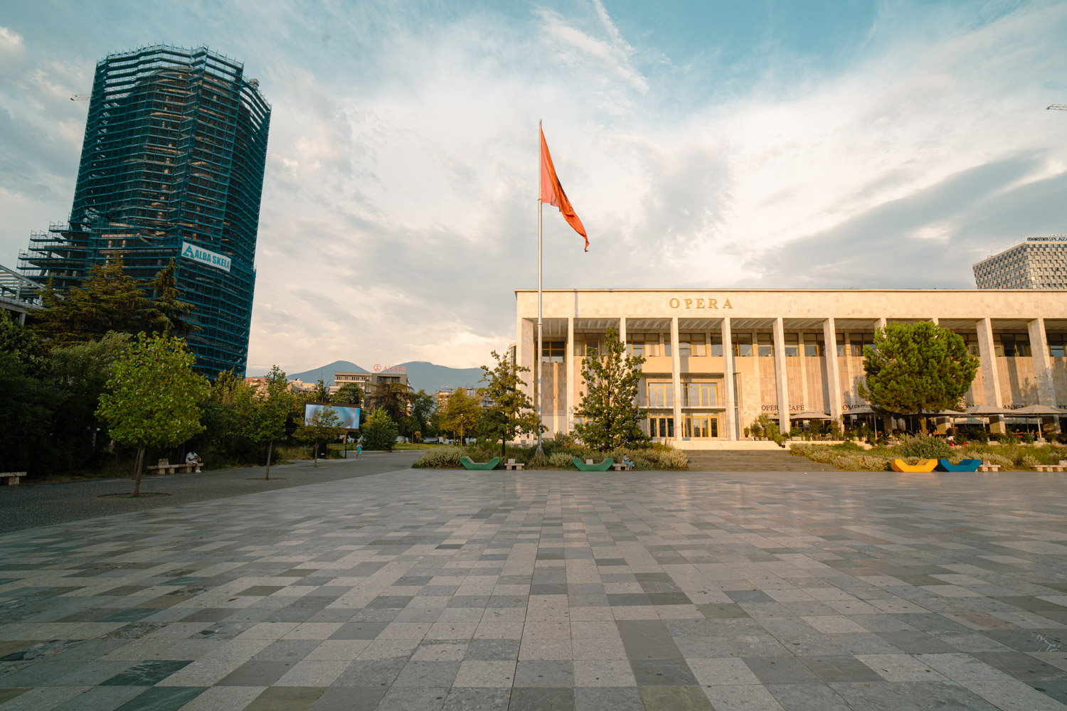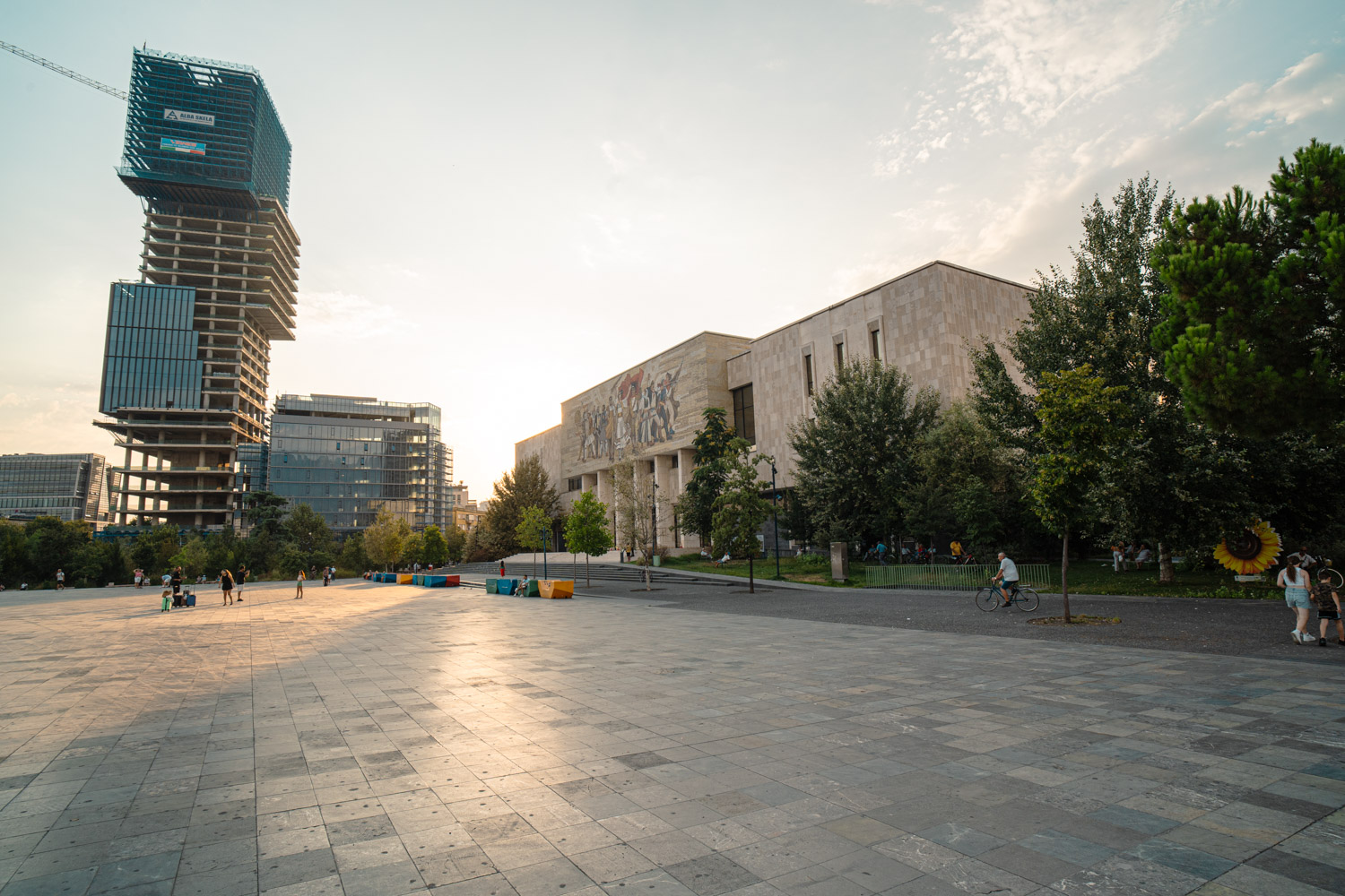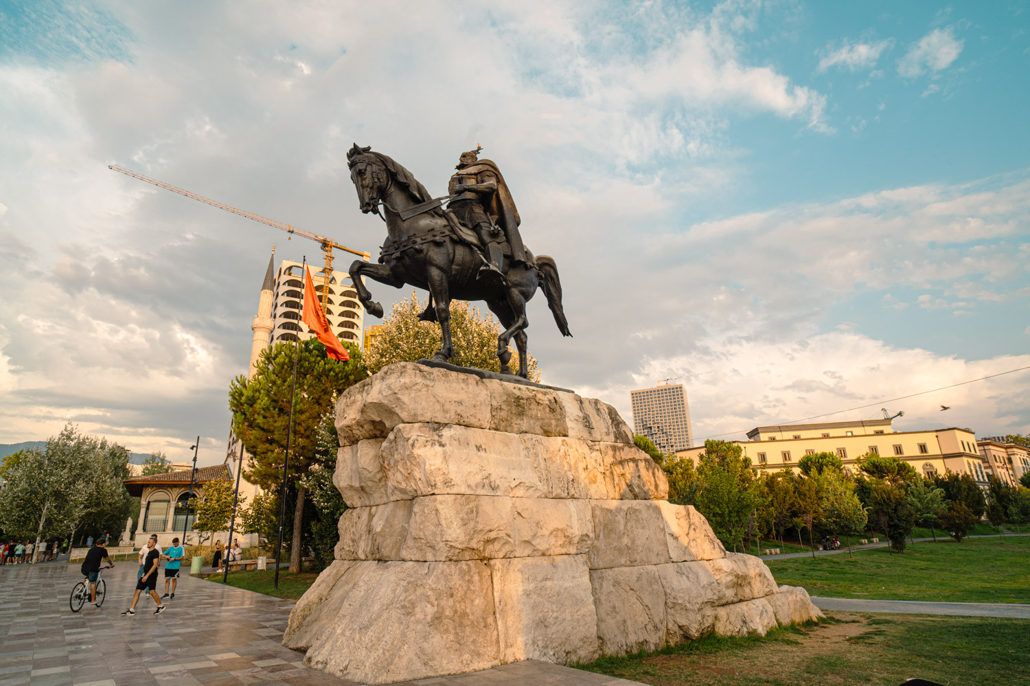 La plaza Skanderbeg, centro neurálgico de Tirana, nos recibe con la imponente estatua ecuestre del héroe nacional. En este espacio peatonalizado, se entrelazan la historia y la vida cotidiana, ofreciendo un vistazo a la identidad de la ciudad. Desde aquí, se despliega un abanico de monumentos y edificaciones que narran el devenir de Albania a lo largo de los siglos.