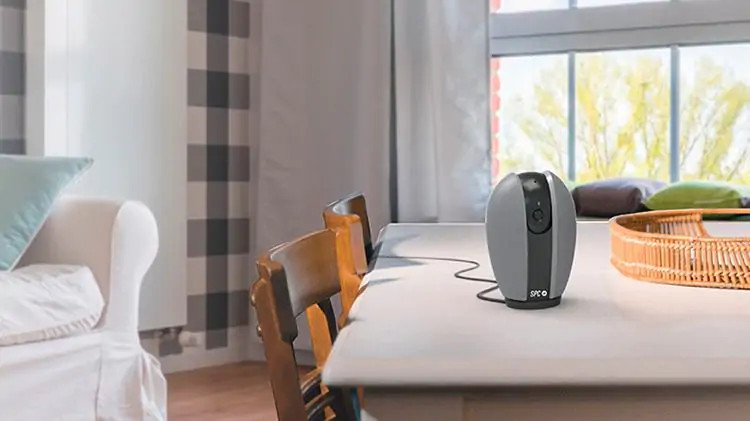 Teia de SPC es una cámara WiFi para situarla en el interior del hogar para lo cual hace uso de una base que permite situarla sobre cualquier mueble o superficie. Realiza grabaciones HD 720p con resolución 1280×720 e integra visión nocturna y detección de movimiento. Permite obtener una visión de 360 grados y dispone de control remoto en todas las direcciones —arriba, abajo, izquierda, derecha— de forma que con una sola pasada se abarca toda una habitación.